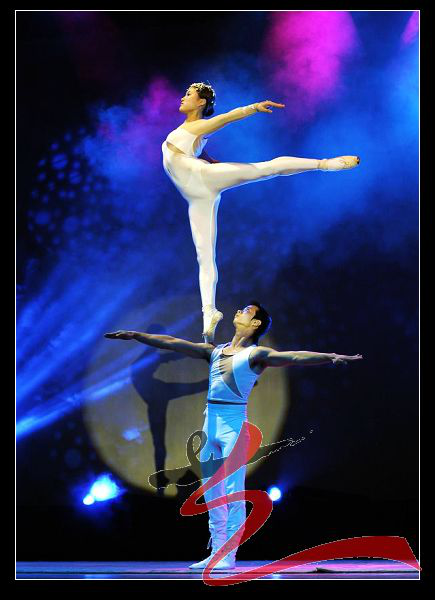 肩上芭蕾在优雅的音乐声中,女演员在男演员的背上、双肩、手掌和头顶上轻灵地跳着芭蕾舞,将芭蕾的高雅艺术糅进中国的传统杂技里.视频链接:http://v.youku.com/v_show/id_XMjU2MTcwNTUy.html?tpa=dW5pb25faWQ9MTAyMjEzXzEwMDAwMl8wMV8wMQ